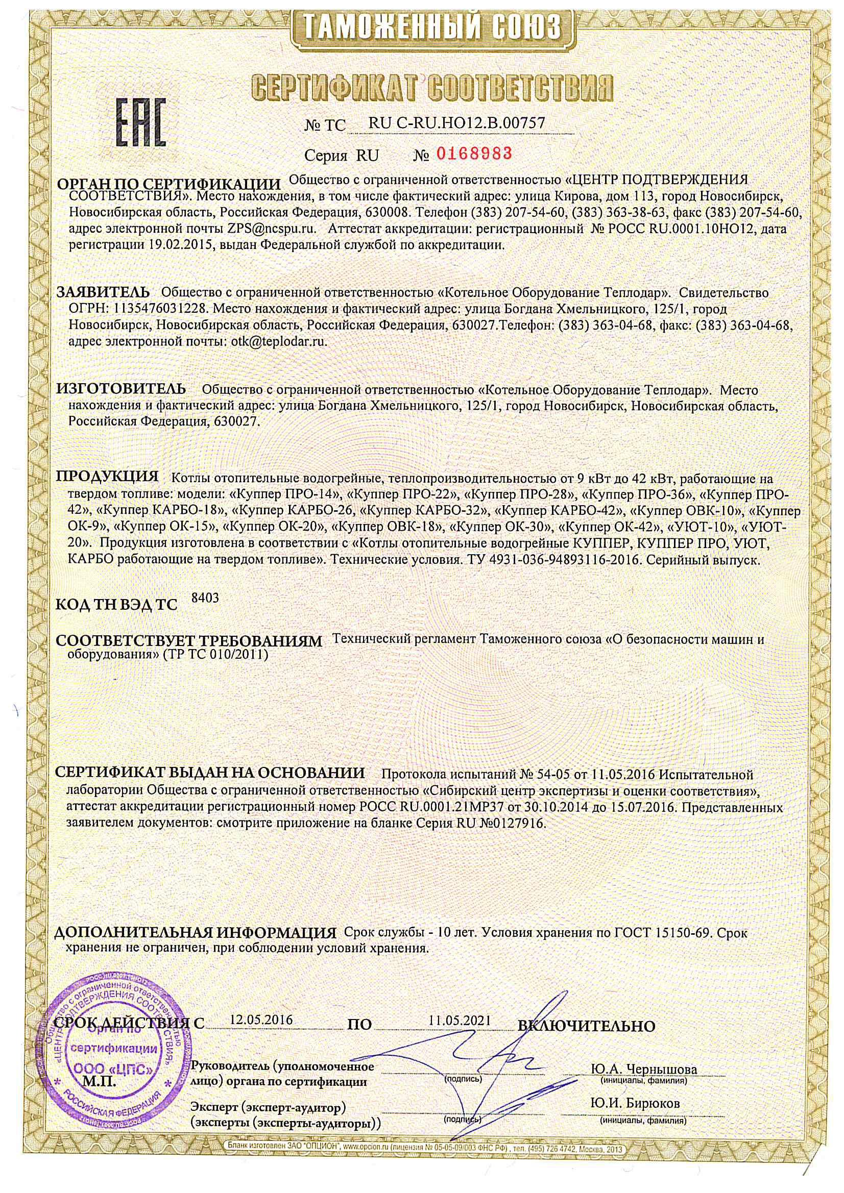 В базовую комплектацию котла «Куппер ОК/ОВК 2.0» входит: кочерга, шуровка, термометр, поворотный шибер.